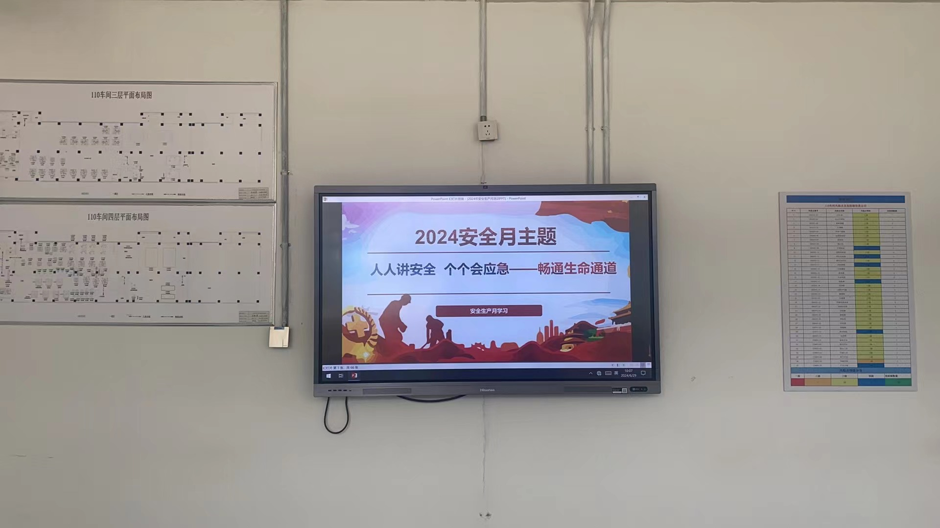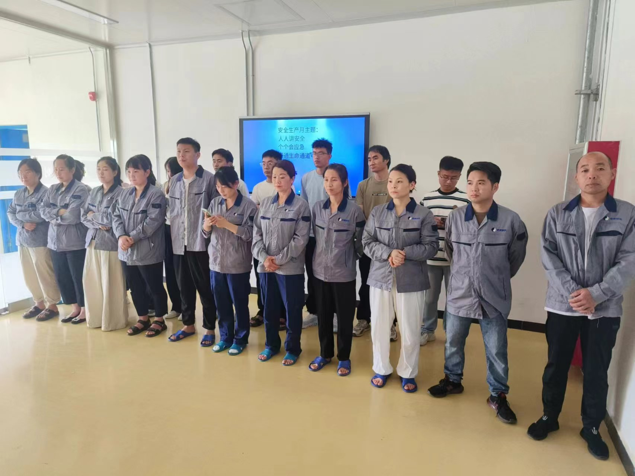 各生产车间利用门厅处电视屏幕24小时播放“安全生产月”主题内容及活动标语,,营造了良好的活动氛围,,,,拉开了“安全生产月”活动的序幕。。为“安全生产月”活动的顺利开展做好了铺垫。。