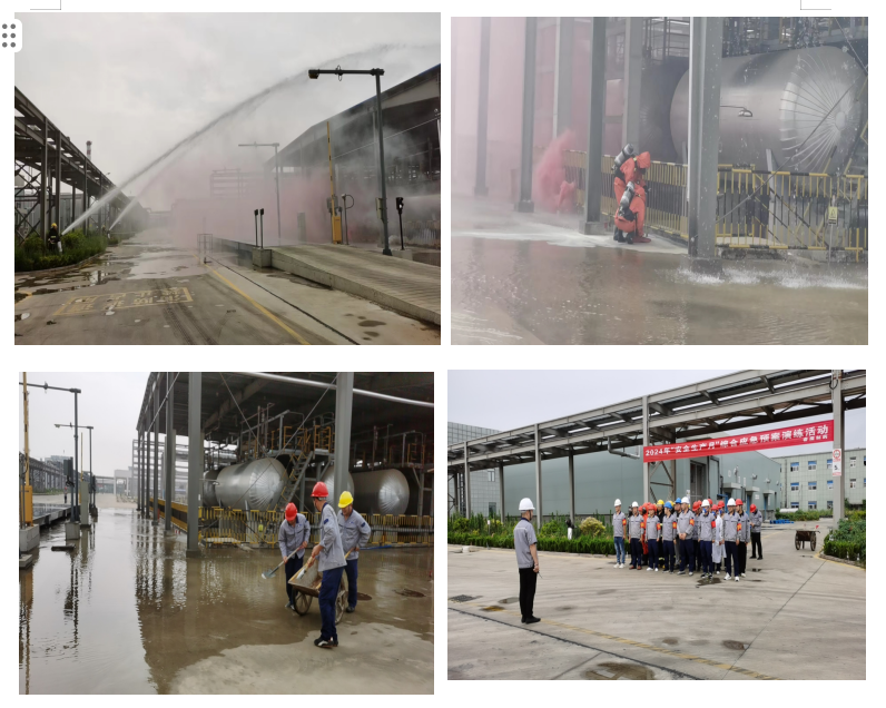 为加强对突发事故应急处置和员工自救互救能力,,在“安全生产月”活动期间,,,,公司各车间、、、部门按活动方案开展了(灼烫、、火灾、、车辆伤害)现场处置方案应急演练。。并开展了了一次综合性生产安全事故应急预案演练,,