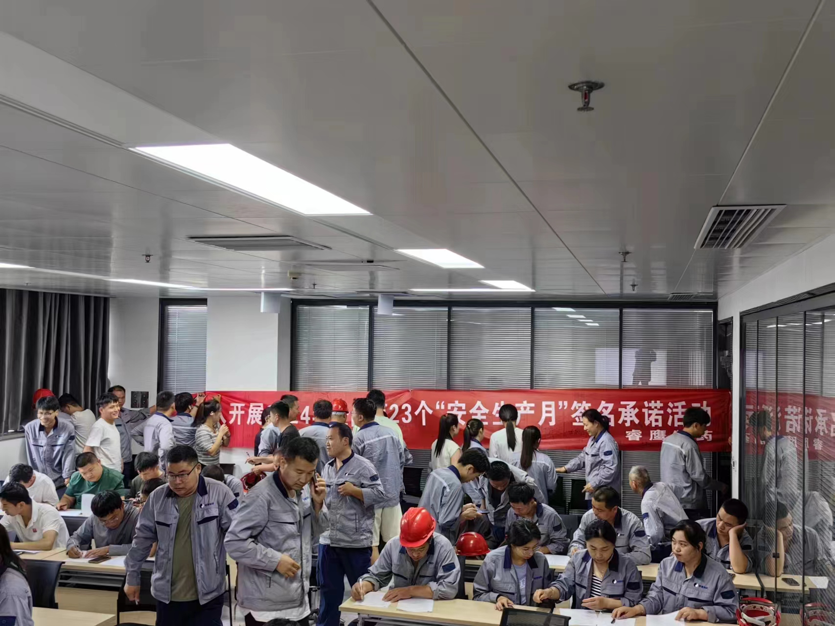 同时公司领导对2024年“安全生产月”提出了具体的工作要求和部署,,,要求各车间、、部门负责人,,,要广泛发动全体职工,,,积极参与公司组织的各种“安全月”活动,,,,努力提高全公司员工的安全生产意识和安全操作水平。。并且要求各车间也相继组织员工召开安全月动员大会,,,各自成立了“安全生产月”活动领导小组,,,根据车间安全生产实际,,,,制定出活动内容和实施方案,,,,以保证 “安全生产月”活动的有效开展。。